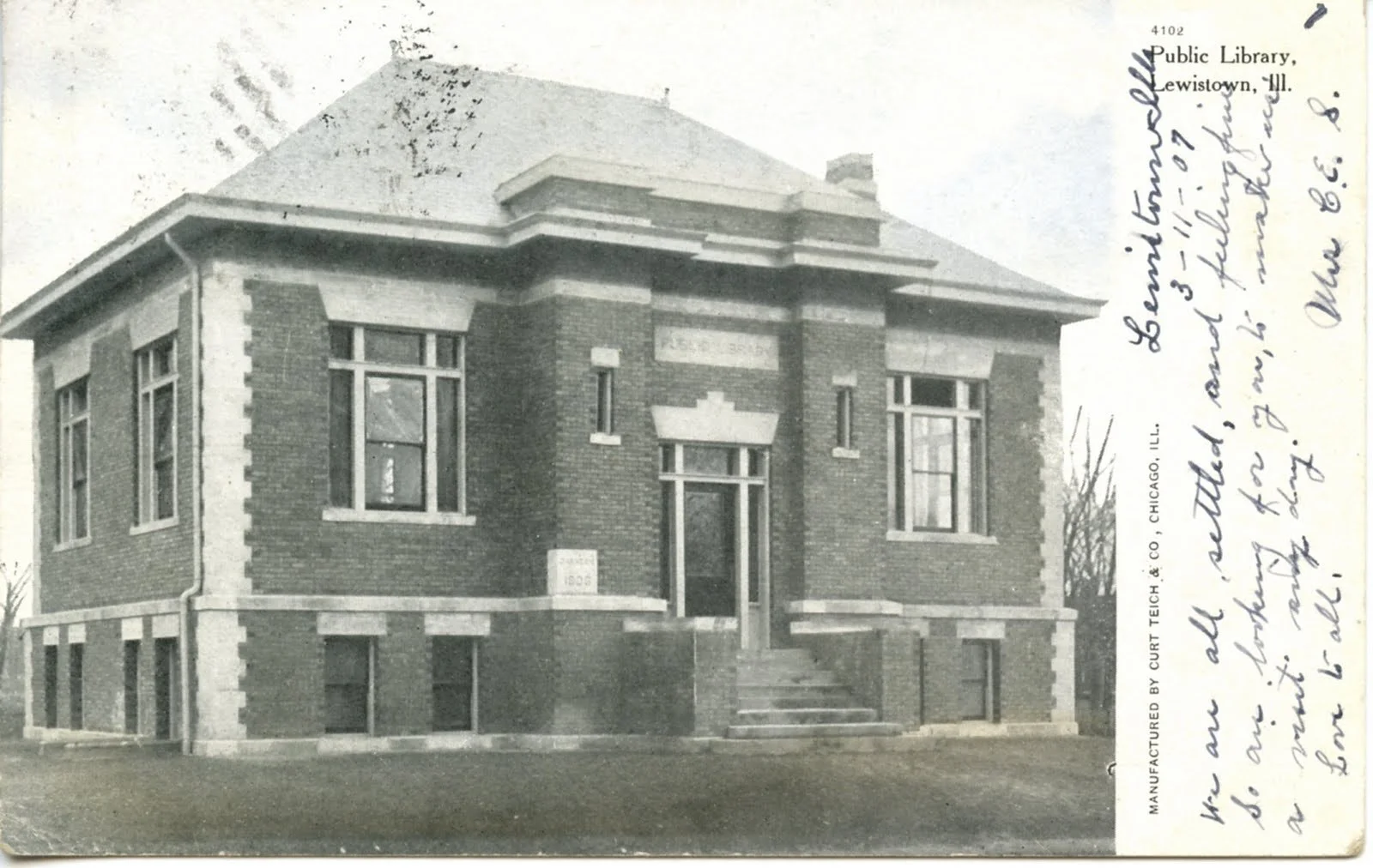 On December 16, 1905, Lewistown was notified a $5,000 grant (later increased to $5,400) would be forthcoming from the Carnegie Corporation. The following year a lot site was purchased for $450 from Amelia and Daniel Talbott, a building design by Paul O. Moratz of Bloomington, IL was created, and T. M. Mercer was contracted for the construction of the Lewistown Carnegie Public Library. The library materials were moved once again; but, this move has lasted more than 100 years.